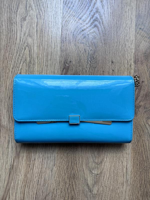 Клатч бирюзового цвета. Лаковая искусственная кожа. Размер 27х17
