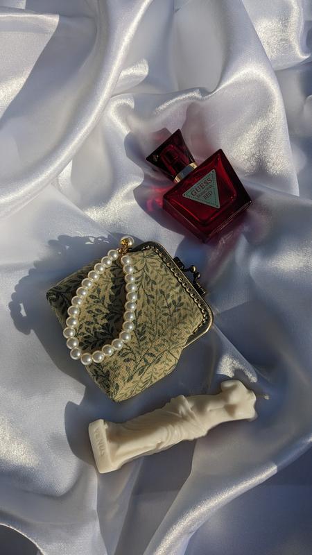 D0209 • Rosalie purse 👜 Элегантная маленькая сумочка кошелек ридикюль в ретро стиле, которая сочетает в себе изысканность и очарование прошлого века. Идеальное дополнение к вечернему наряду или винтажному образу. Изготовлена из высококачественных материалов, ручная работа. Основным украшением кошелька являются деликатные жемчужинки, что добавляет сумочке дополнительный блеск ✨ Несмотря на свои компактные размеры, в кошелек можно поместить самое необходимое: деньги, карточки, ключи, помаду и даже небольшой флакончик парфюма. • Текстиль/бавовна; • Принт листя верби; • Модель с 1 отделением, на подкладке; • Длина цепочки - 20 см; • В комплекте цепочка с перлами; • Пильник в комплекте ✔️ Размер: - Толщина: 3 cm. - Высота: 9 cm. - Ширина снизу: 8,5 cm. упаковка: бирка, белого цвета коробочка, подарочная бумага и лента (фото в посте)