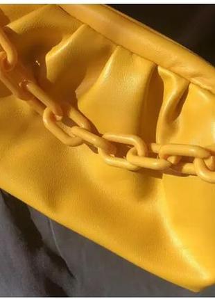 Гарна та стильна молодіжна сумочка на магнітній застібці в мінімалістичному дизайні, прикрашена трендовим ланцюжком пластиковим в тон сумки (відстібається). М'який шкірозамінник, містка. Нова, в ідеальному стані. Країна виробник: Китай Склад: еко-шкіра Колір: жовтий ЗАМІРІ: Висота: 20 см. Ширина: 29 см.