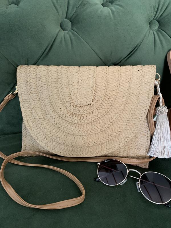 Летняя плетеная сумка клатч с шелковой кисточкой. Ручки снимаются. Легкая, вместительная и стильная. Идеально для летних прогулок и отдыха.