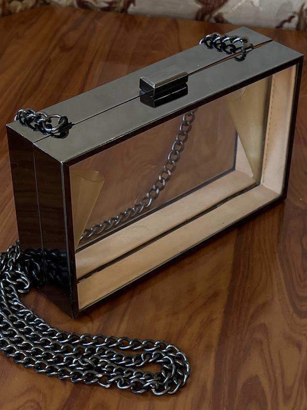 Клатч Zara, длина 17.5см, высота 11.5см, боковая часть 5см в закрытом виде, фурнитура темный металл, одна силиконовая вставка слегка повреждена
