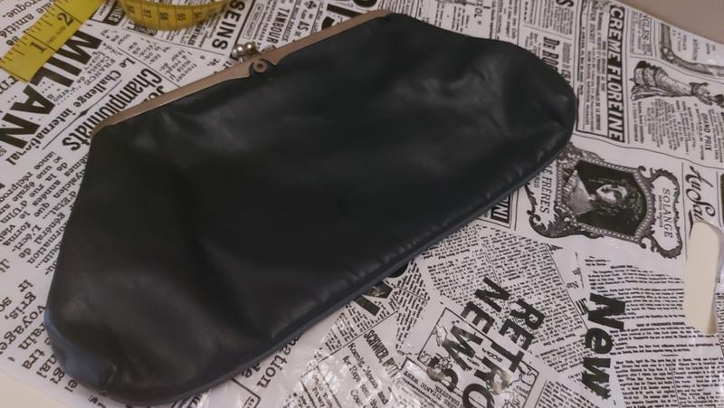 Сумочка темно - синего цвета, защелка поцелуй. Размеры - длина 28 см, ширина 16, верх длина 21 cм