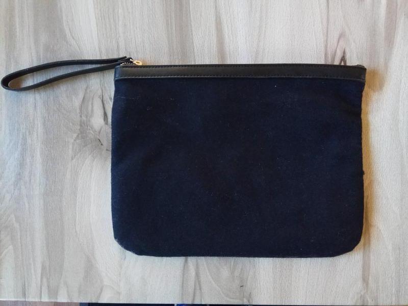 Стильний клатч від фірми З&А. Ширина 29,5 см , висота 23 см Дуже зручний, практичний, всередині є маленьке бокове відділення на блискавці. Склад: вовна + штучна шкіра. Колір: чорний