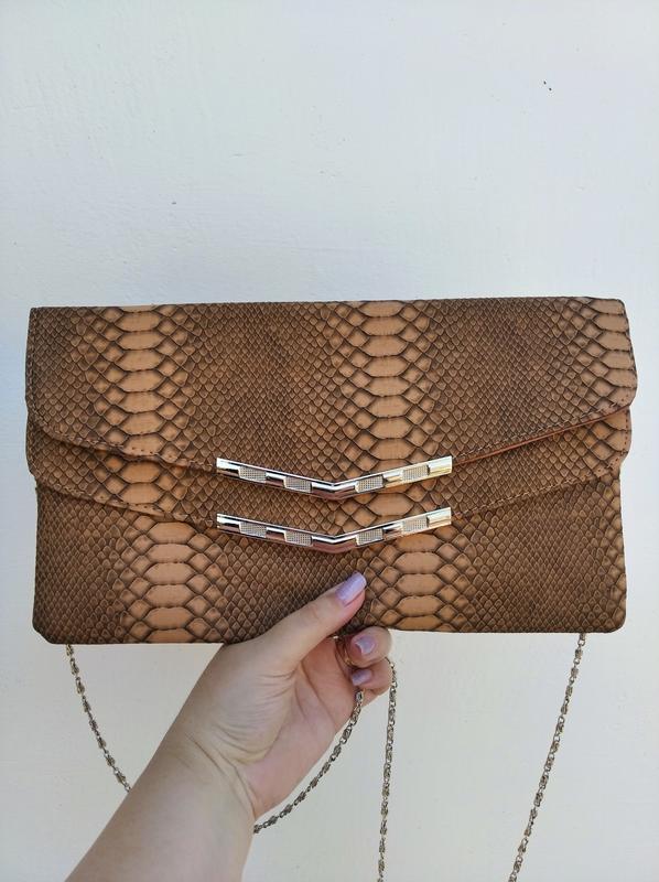 Фото реальное Новые с бирками Можно брать и на подарок Сумка клатч Эко кожа под рептилию На подкладке Два отделения (+ кармана внутри на замочке) Спереди отделение-карман на кнопке Застегивается на кнопку В комплекте идет длинная съемная цепочка-ремень + съемная ручка-карабин Цвет какао Замеры: Длина 30см Высота 17см Оплата на карту Приват банка Доставка Укр почта или Новая почта Обмена и возврата нет