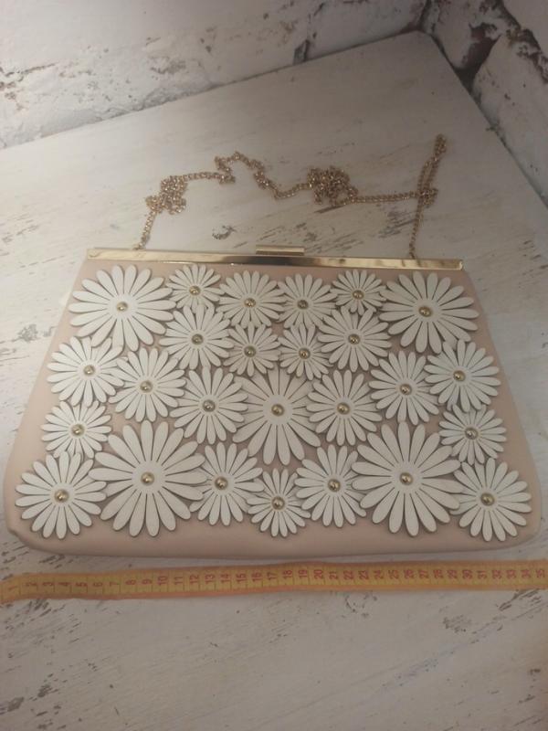 Оригинальный клатч, новый, цветы объемные, нежно бежевый цвет