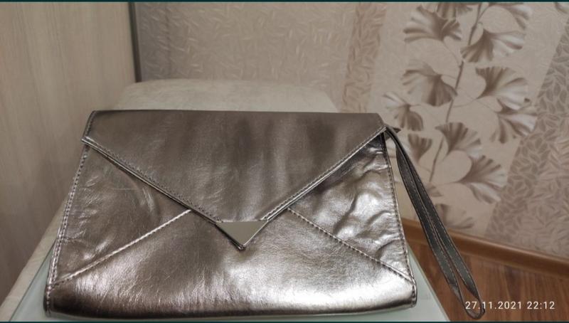 Клатч жіночий Oriflame. Стан новий. Матеріал - штучна шкіра Колір - сріблястий У клатча є маленька ручка. Клатч застібається на блискавку та кнопку. Усередені є маленьке дзеркальце, одне відділення та карман, який застібається на блискавку Розміри: - довжина - 25см; - ширина - 5см; - висота - 18см.