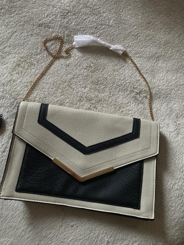 Очень красиво смотрится.Колир молочный с черным.Змеиный принт. Фурнитура золотая.