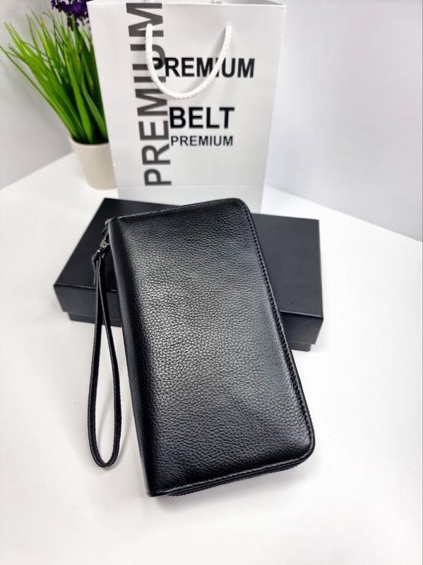 Натуральная кожа. Производитель Китай. Есть 6 отделения для купюр, 27 отделений для пластиковых карт, монетница на молнии и ремешок на руку. размер: 21 × 11.5