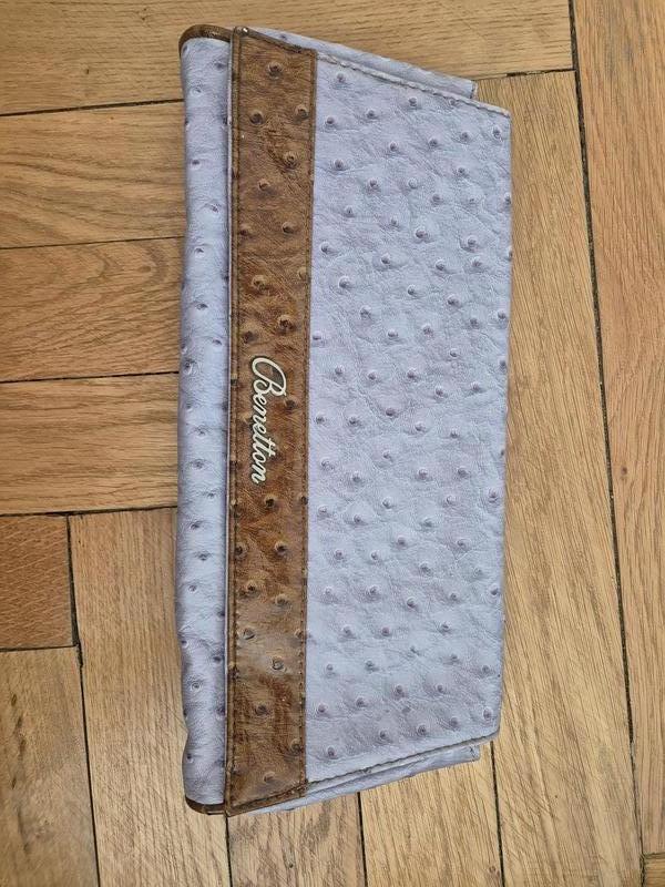 Сумка клатч хорошого бренду Benetton зі страусиної шкіри в бузковому кольорі. Є незначний нюанс на зворотній стороні. Фото додані.