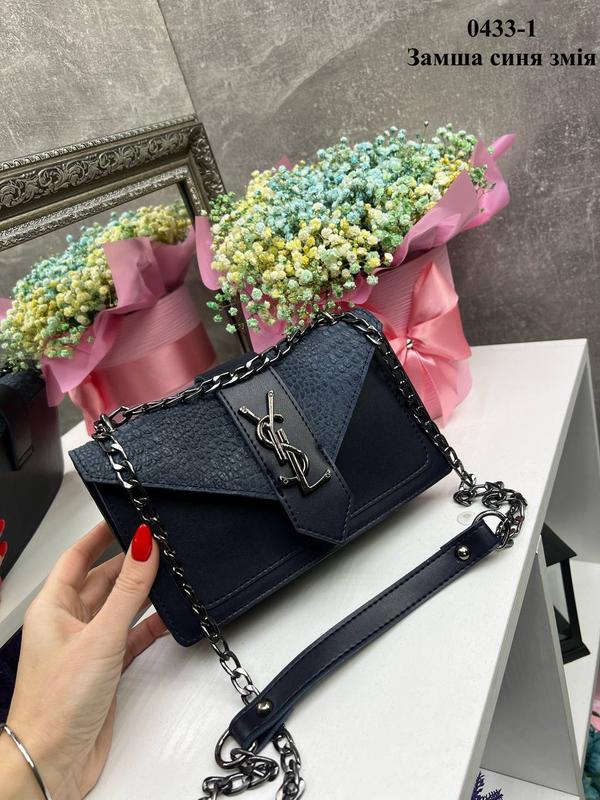 Код 0433-1. Нат.замша МОЯ /Экокожа 23 см ширина. 14 см высота. 7 см дно. Одно отделение, подоленое пополам перегородкой на молнии. Внутри открытый карман. Длина цепочки 100 см Отправка только новой по почте полная оплата Цвет уточняйте