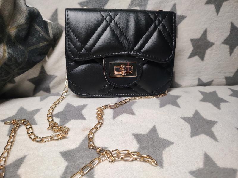 Черная сумочка с ремешком цепочкой. Аккуратно выглядит. Только для безделушек. Размер 18*14