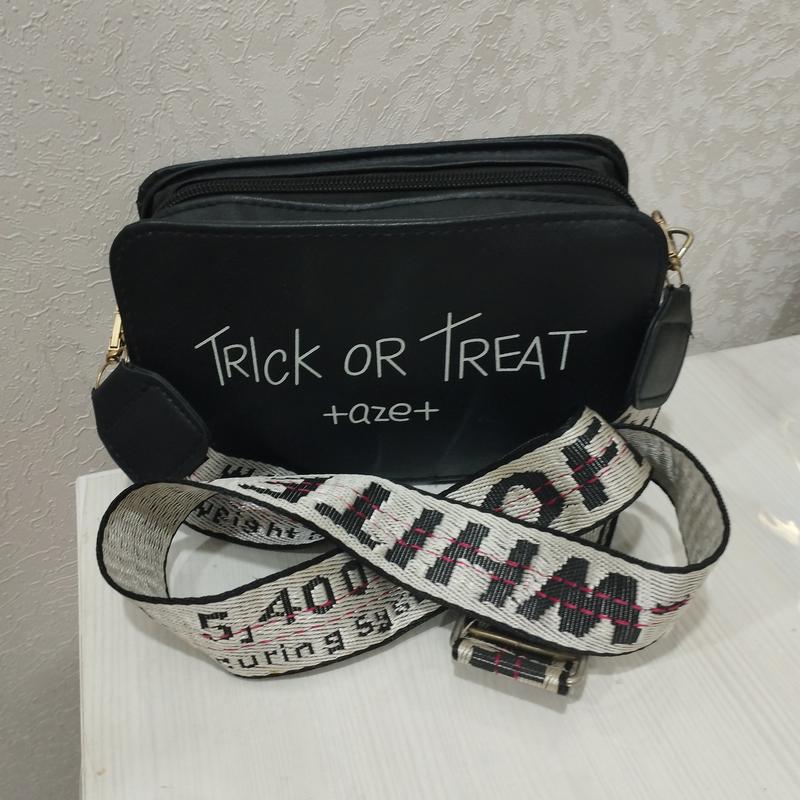 Небольшая черная сумка-клатч на широком ремешке через плечо. Материал экокожа. Размеры: 19 см × 11.5 см × 5,5 см. Сумка имеет одно вместительное отделение на молнии.