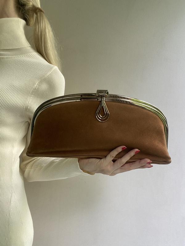 Винтажный клатч рыжего цвета под замш стильные сумки 2025