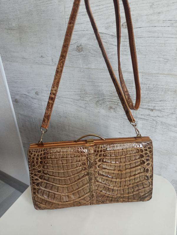 винтажная сумочка-клатч из кожи крокодила.В середине полностью кожаная.Размеры:24х14х4 см.