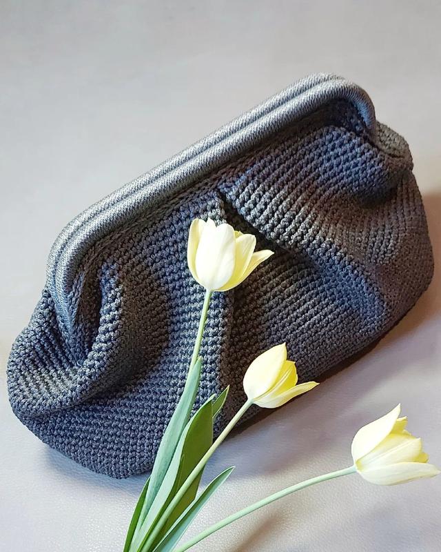 Сумка пельмень (клатч, саквояж) связана крючком из полипропиленового шнура 3 мм графитового цвета, есть пельклад с карманчиком. Размер фермуара 25 см, размер по денцу 35×18 см, высота 18 см. Крупная, красивая и стильная. Материал из которого изготовлена сумка не выгорает и отлично поддается чистке мягкой щеточкой или влажными салфетками. Более детальную информацию дам по запросу.