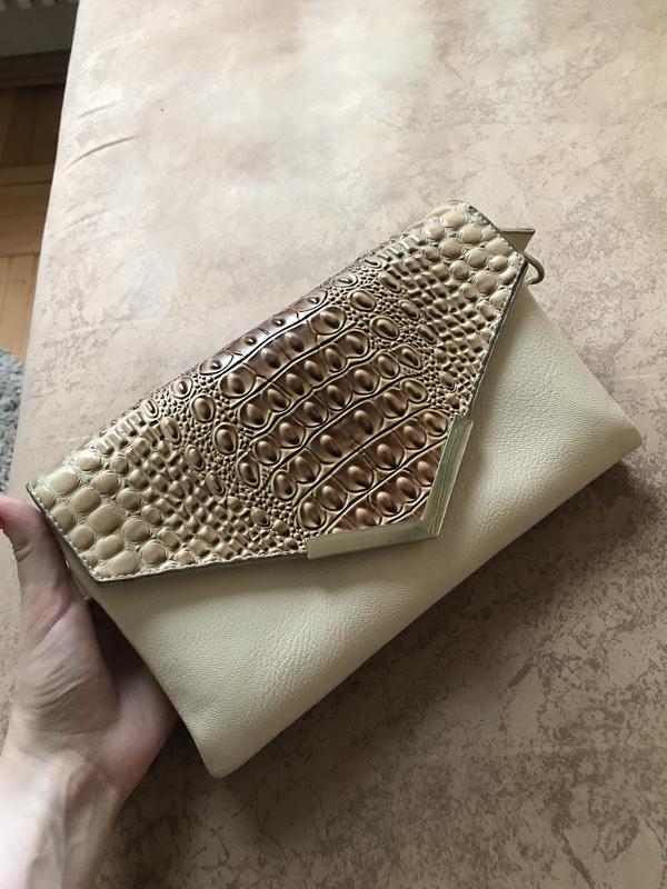 Сумка-клач из кожизаменителя, длина 30 см, высота 15 см, внутри два отдела, дополнительно ручка длинная и короткая, на кнопке закрывается