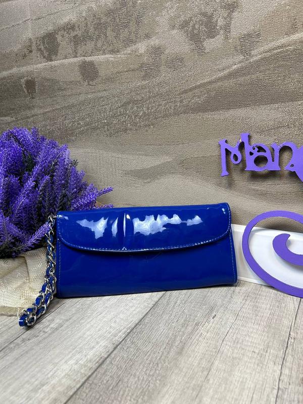 Женский клатч Next синего цвета. Лакированная кожа. Сбоку маленькой несъёмная ручка-цепочка. Застёжка кнопка. Внутри одно отделение и карман на молнии. Состояние б/у, в очень хорошем состоянии Производитель Next Страна производитель Китай Цвет синий Материал искусственная лакированная кожа Состав 100% полиэстер Размер длина 22 см, высота 10,5 см, глубина 2 см Длина цепочки-ручки 28 см
