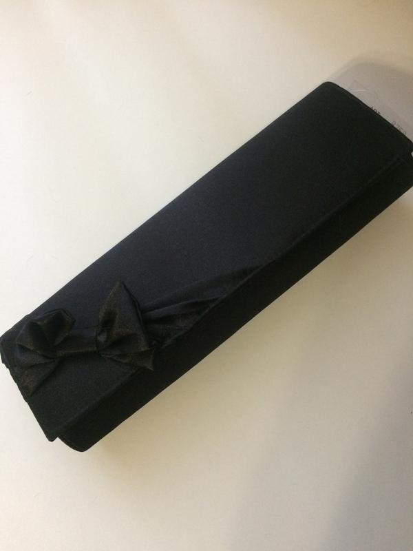 Чорний Клатч з бантиком} Є додаткова довга ручка Розміри: Довжина-27,5 Висота-9 Ширина -5