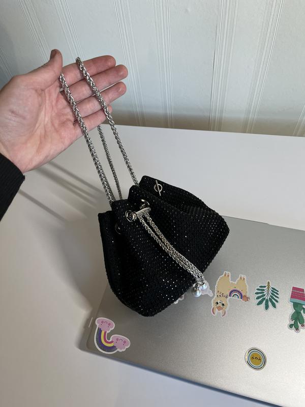 New Year's collections 🔥 D0041 • SHINE BAG 👜 А вот и наша лимитированная новогодняя коллекция сумок - черная сумочка мешочек в блестках. Модель сумки выполнена из ткани, а также в комплекте дополнительная цепочка. В середине одно отделение на подкладке, с дополнительным карманчиком для мелочей. Сумочка открывается с помощью кнопочки сбоку. • Отделение застегивается на кнопке; • Полная длина цепочки - 100 см; Размер сумки: - Товщина: 9 см. - Висота: 14,5 см. - Ширина: 16,5 см. Состав: ткань. В комплекте пловник к сумке и коробка ✅ В комплекте праздничная упаковка ✅