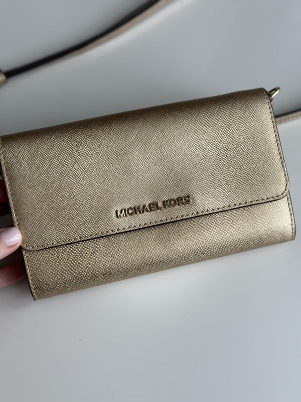 Клатч Michael Kors. Оригинальный. Цвет - золотой. Состояние 9 из 10. Кожа. Размер 19.4/12/3 см