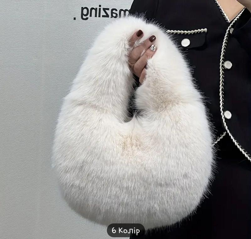 Элегантный белый клатч из искусственного меха для женщин - шикарная мини-сумочка на молнии с полиэстеровой подкладкой.