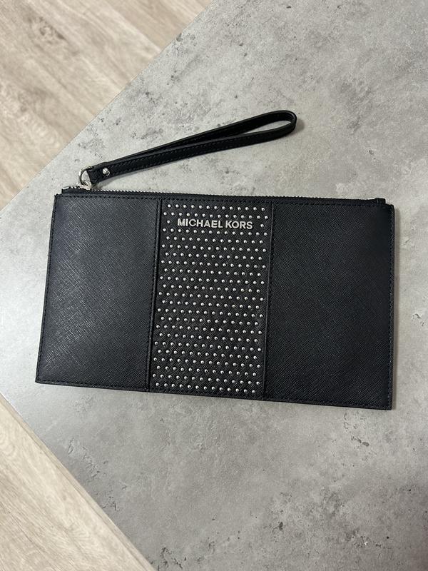 Оригинальный клатч с серебряной гарнитурой и ремешком на запястье. Размер 25*14см