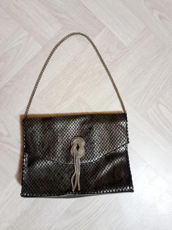 24х18х5 каркасный клатч, обтянутый тканью под рептилию, на цепочке.