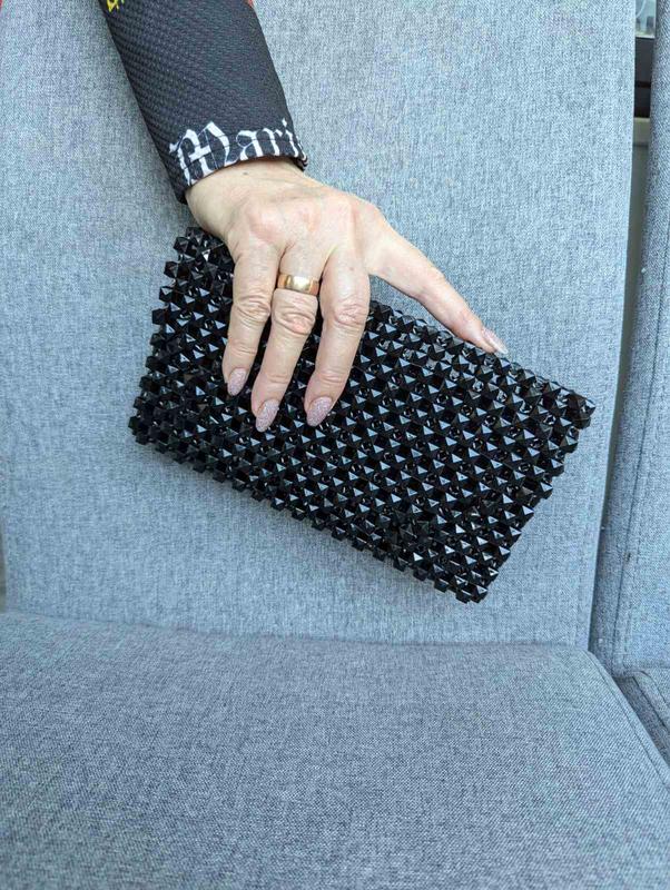 Клатч черного цвета небольшой, удобный, можно добавить ремень, без подкладки. Замеры: ширина - 22,5 см. высота - 13 см. глибина - 3,5 см. Смотрите больше сумочек в своих объявлениях. Возможно изготовление других аксессуаров из бусин по заказу (шкатулки, органайзеры, подарочные конверты для денег)