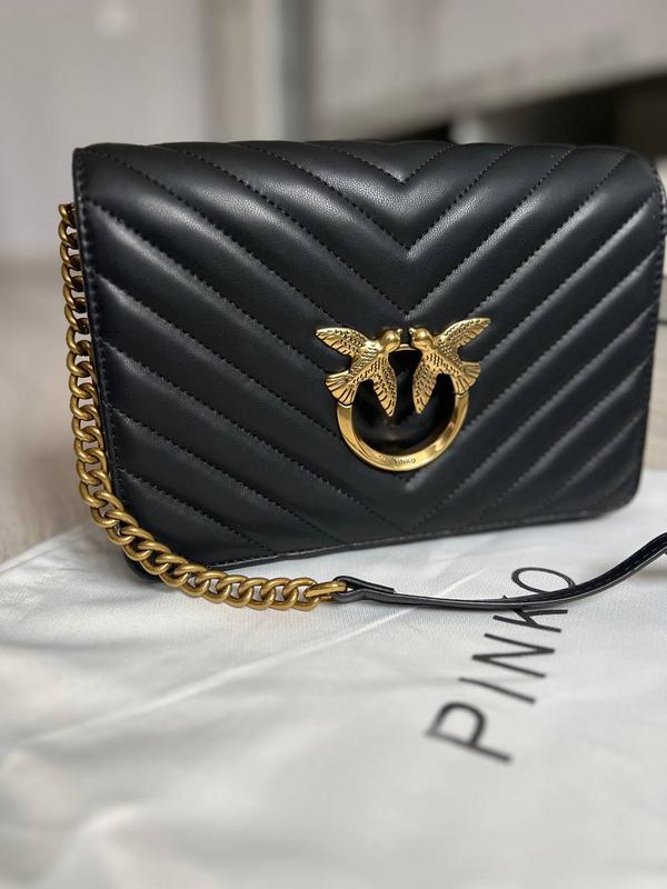 👜 Pinko (Арт: 08008) Преміум якість⭐️ 📐 Розмір: 25 х 17 х 6 см 🧵 Матеріал: Шкіра 🔎 Опис: Сумка виготовлена з гладкої шкіри, прострочена. Всередині два відділення, а кишеня на блискавці, також є невеличка кишеня. Підкладка у сумки з щільного текстилю. Фурнітура металева, брендована. У сумки є золотистий ланцюжок з шкіряною ручкою (має можливість регулюватись як для носіння через плече, так і у руці). Комплектується у брендовану коробку на магнітах, пильовик, буклети.
