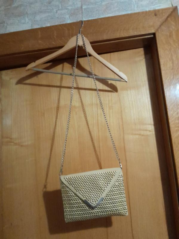 Верх-плотная джинсовая ткань, спереди в пайетки на цепочке.Размер 24×17см, длина цепочки 57см-це половинка