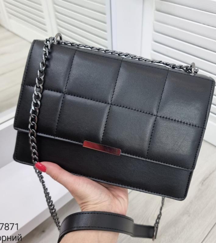 сумочка клатч в екокоже черная через плечо на цепочке стеганая РАЗМЕРЫ: Ширина - 24 см, высота - 16 см, дно - 8,5 см + длинный ремешок (118 см)