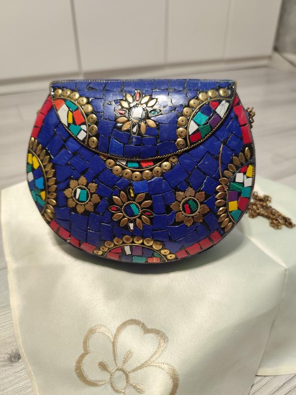 Уникальная винтажная сумочка клатч в Индийском стиле,сост.отличное есть дифект на фото небольшой проволочка отошла,сделана из метала,на цепочке,весит чуть меньше килограмма,очень красивая вещь,внутри замш или бархат,доп.инф пишите договоримся🤝