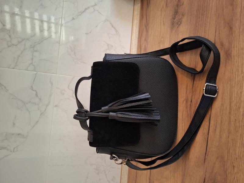 Маленька жіноча чорна сумка клатч з штучної шкіри та замші. Замшева міні сумочка крос-боді