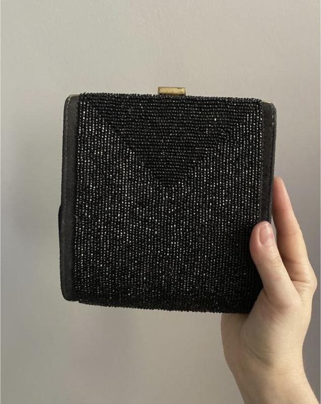 Ретро клатч в классическом стиле, натуральная замша, расшитый бисером, в очень хорошем состоянии. Из недостатков, внизу не хватает несколько бисеринок, при носке не заметно. 400 грн.