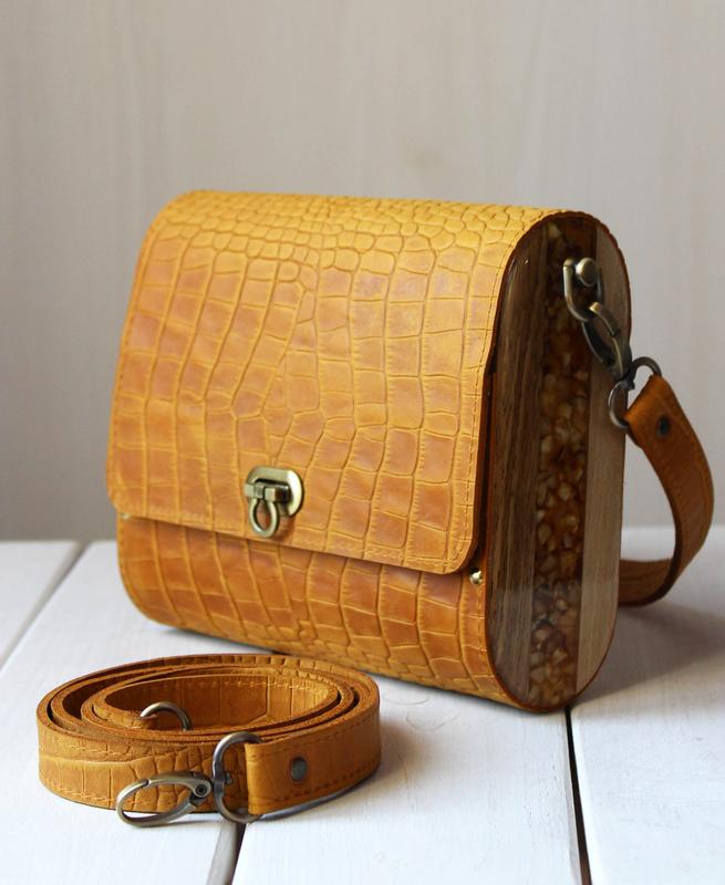 Эксклюзивная сумка удобный женский кожаный клатч с натуральным янтарем voronetskyi