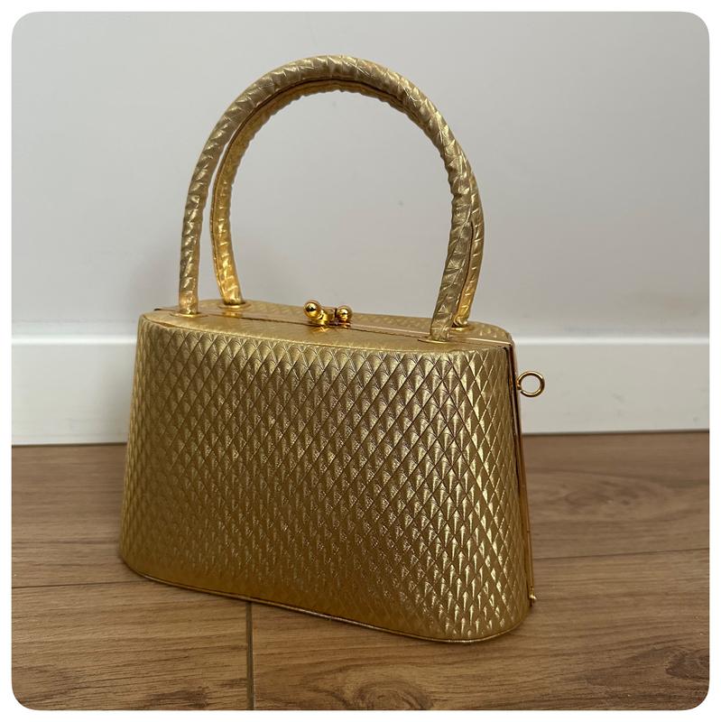 Сумка красивого золотого цвета, с большими удобными ручками, также есть ремешок. Очень в хорошем состоянии, минус в середине сумки есть загрязнения но не большое, на фото должен быть виден. Фурнитура также в хорошем состоянии.