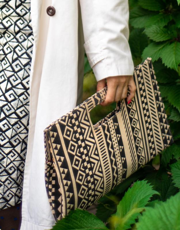 Сумка клатч с принтом и акцентной яркой подкладкой, застежка на кнопку