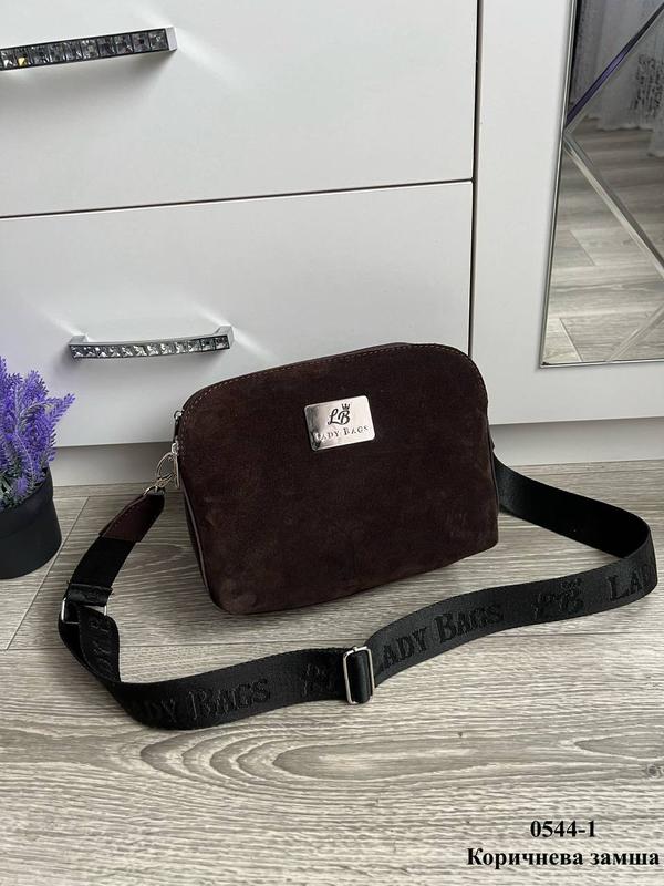 Наявність уточнюйте Кольори: коричневий, сірий Натуральний замш, Штучна шкіра 25х19х10 см Три відділення, кожне на блискавці. Усередині відкрита кишеня і кишеня на блискавці. На зворотному боці кишеня на блискавці. Максимальна довжина ремінця 135 см.