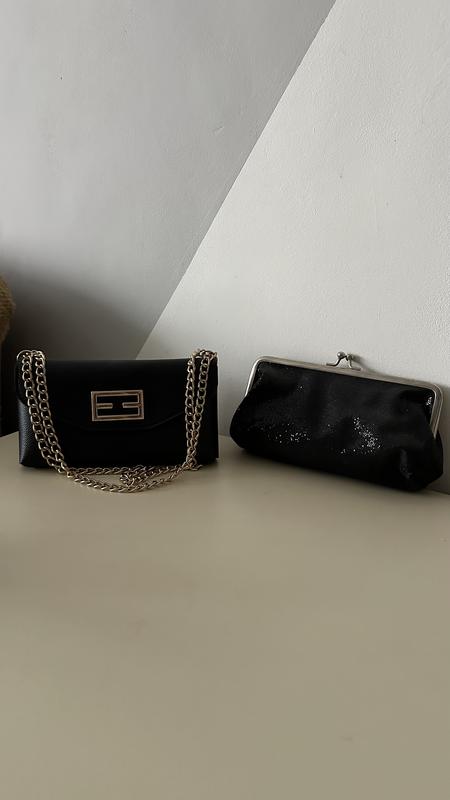 1. Сумка на пояс (без поясу!) від бренду Мохіто Стан: є пошкрябані є місця на жилізці (на фото є) 2. Клатч з блискітками. Дуже гарно дивиться до вечірніх нарядів! З нюансів в середині трохи забруднилась від косметики але відпереться