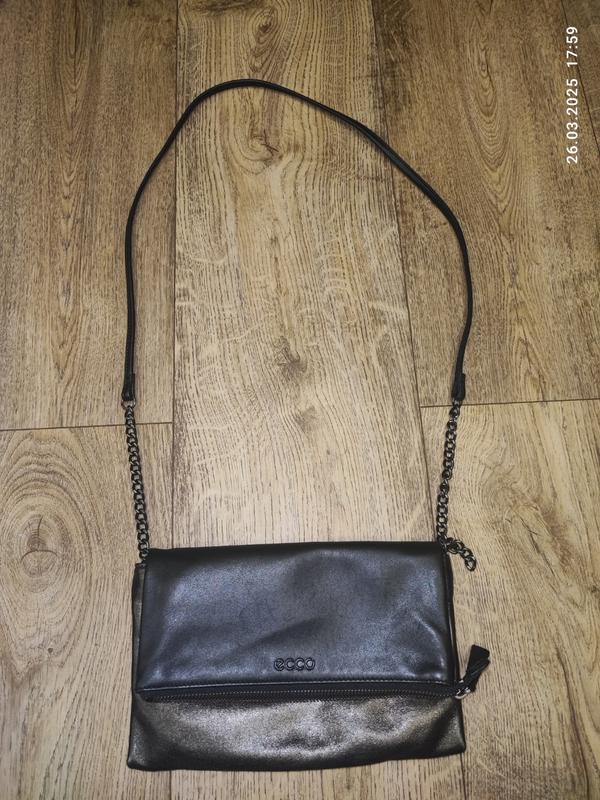 Мягкая кожа цвет черный и бронзовый металлик. Ремешок снимается, также можно рекомендовать его длину Размер:17x25x3 см
