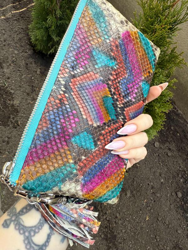 Шикарный яркий клатч на лето кожа питон новый
