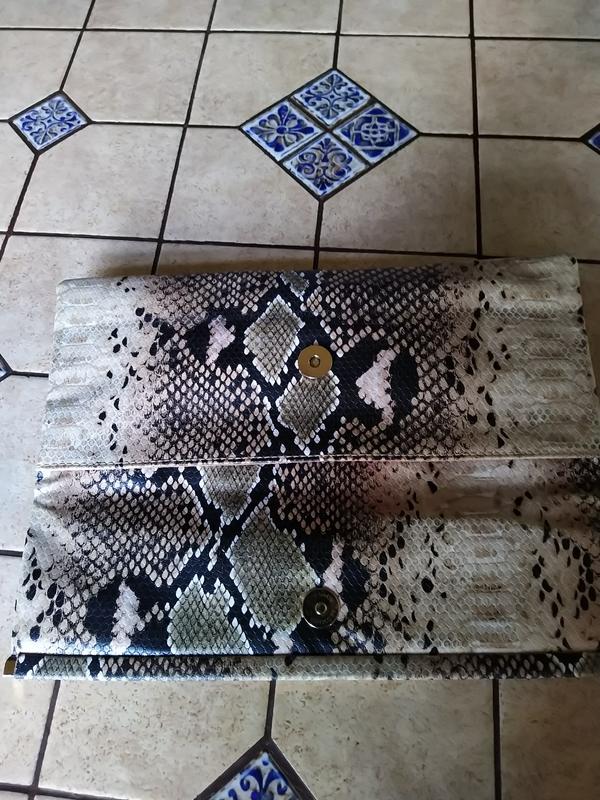 Стан клатча идеальный, есть карман на замочке внутри изделия. закрывается кнопкой. Ширина - 30 см, Высота - 13 см. Цвет клатча может отличаться от цвета на мониторе.