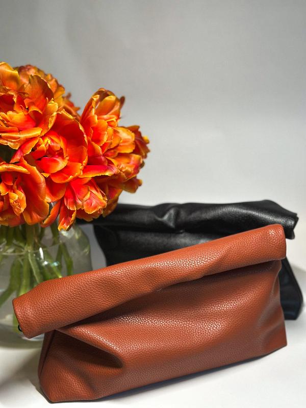 Сумка Soft Roll Price 770 uah Кольори: • Глибокий чорний • Теплий карамельний ⸻ Деталі: • М’яка екошкіра з фактурним покриттям • Скручений верх — характерна “фішка” моделі • Внутрішнє відділення на блискавці • Магнітна застібка • Вміщує все необхідне: від телефону до мінімальної косметички • Можна носити як клатч, або в руці — стильно і зручно • Підкладка – приємна на дотик тканина у гірчичному відтінку