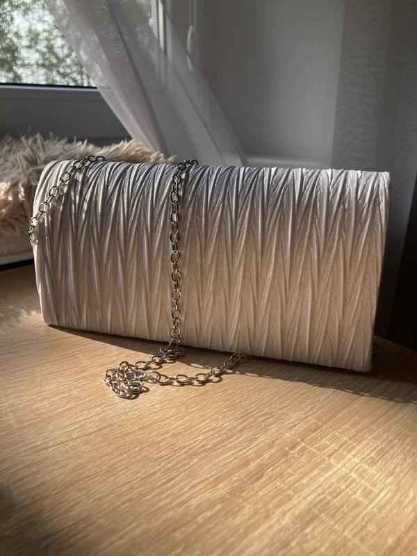 Праздничный клатч,обланый белым атласом 20*11,новый, в последний раз не надевался