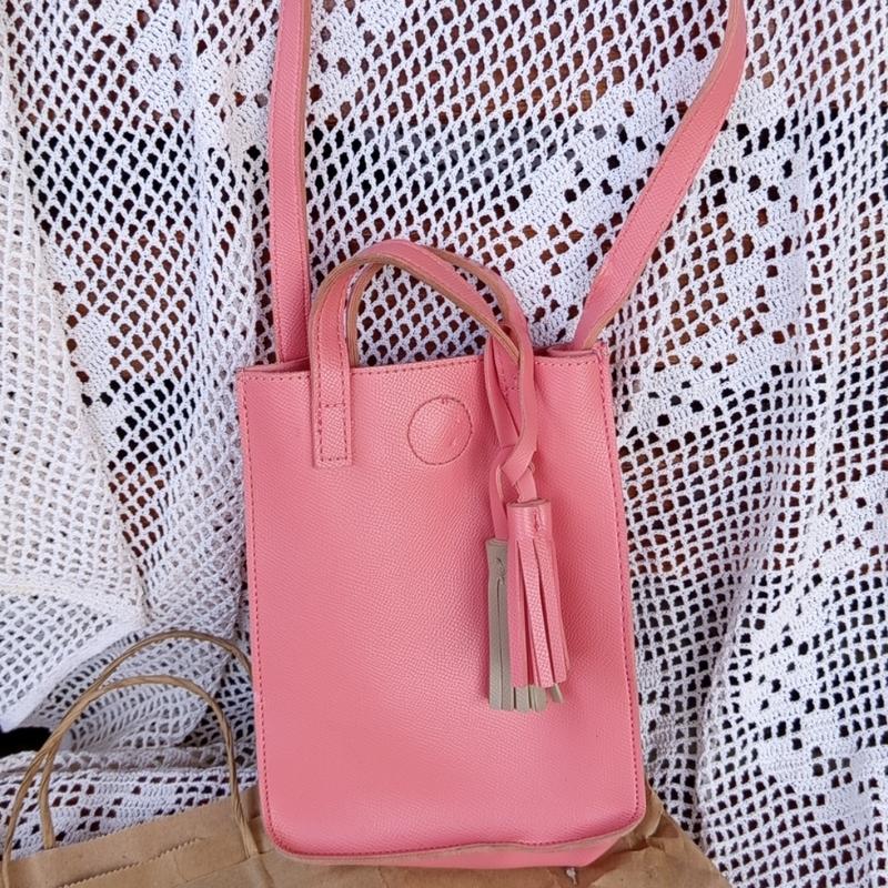 Мини сумочка с ремешком через плечо в красивом пудровом цвете с двумя кистями, маленькие ручки и застежка магнит. Размер 20*15 см.