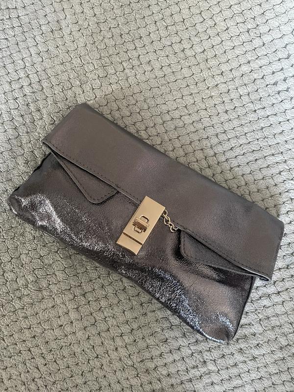 Сумка срібна (сіра) довжина 28, висота 16, позаду є потертості