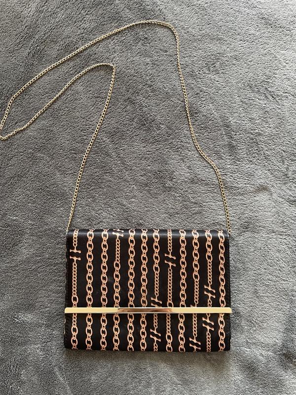 Клатч текстмльний із ланцюжковим принтом, невеличка, довжина 23 см, висота 17 см, пласка, ланцюжок довгий 116 см,