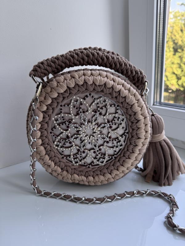 Дуже оригінальна сумочка ручної роботи, яка гарно тримає форму, з цікавим орнаментом і вʼязкою