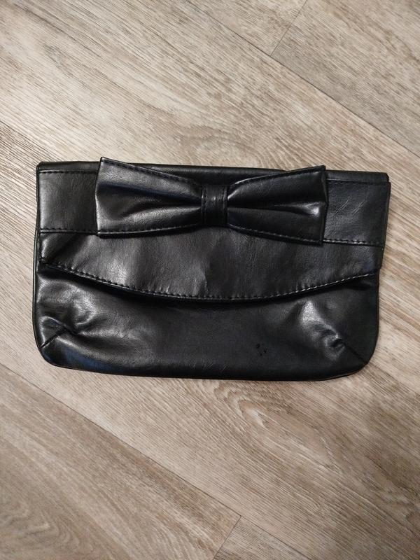 Сумка клатч. Женская. Черного цвета. Складывается книжкой. Один большой сегмент и маленький боковой карманчик. Длина 27 см, высота 16 см.