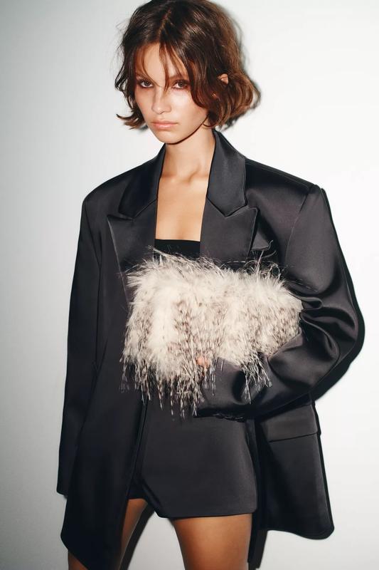 Удлиненный клатч. Корпус из искусственного меха. Ремешок в виде цепочки для ношения через плечо. Внутренняя подкладка. Застежка на магнитный зажим. Высота x длина x ширина: 11 x 28 x 5 см